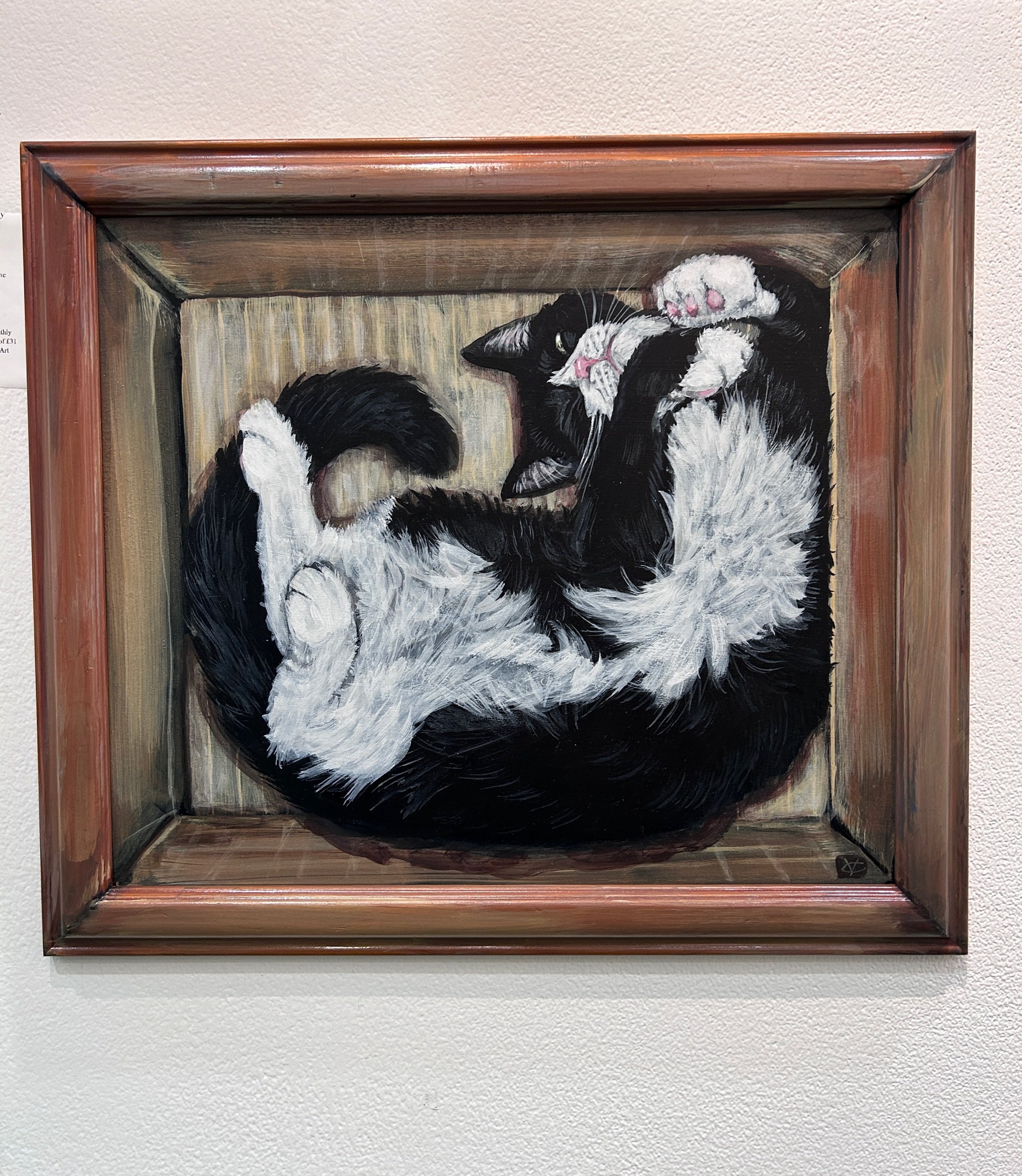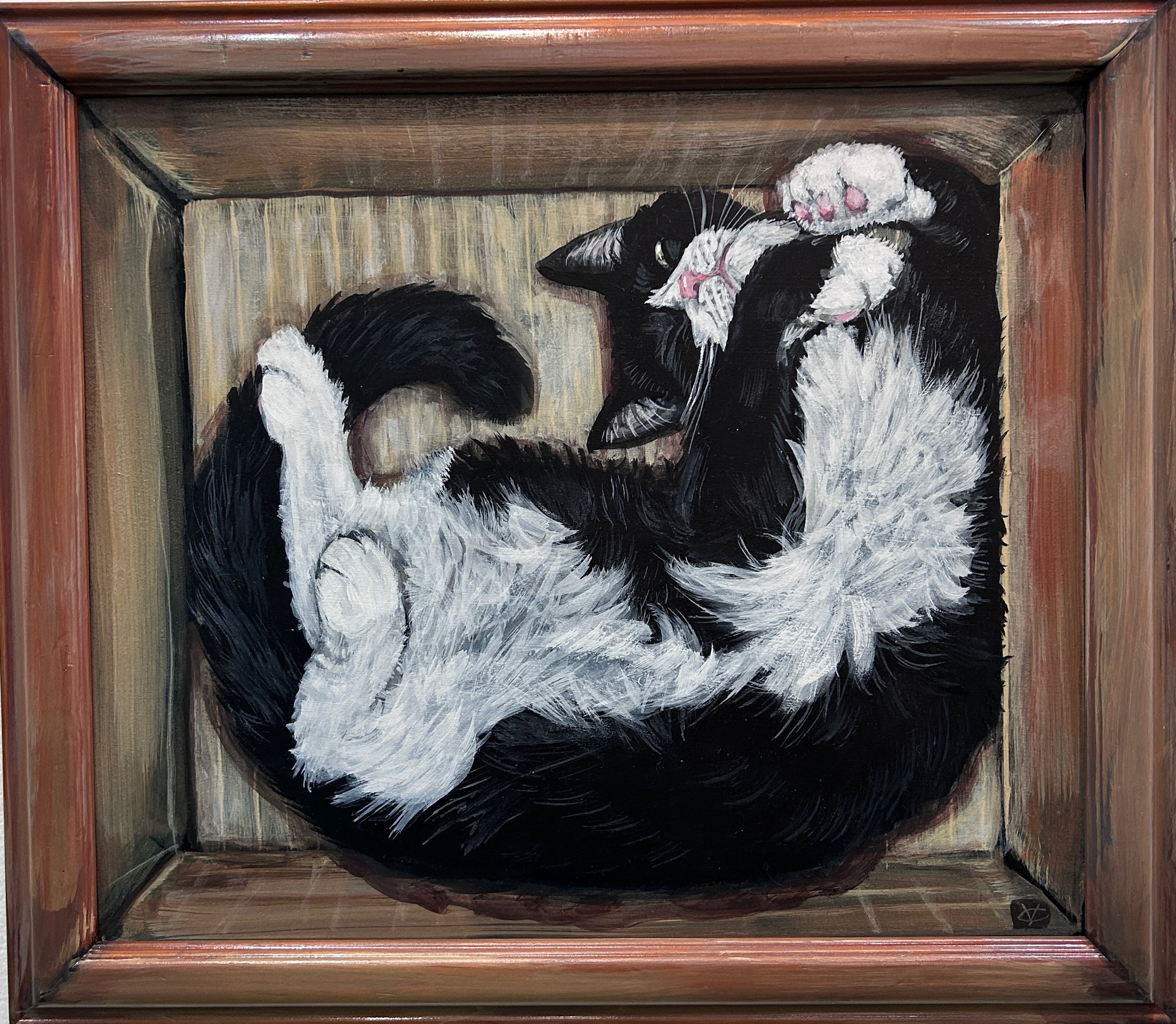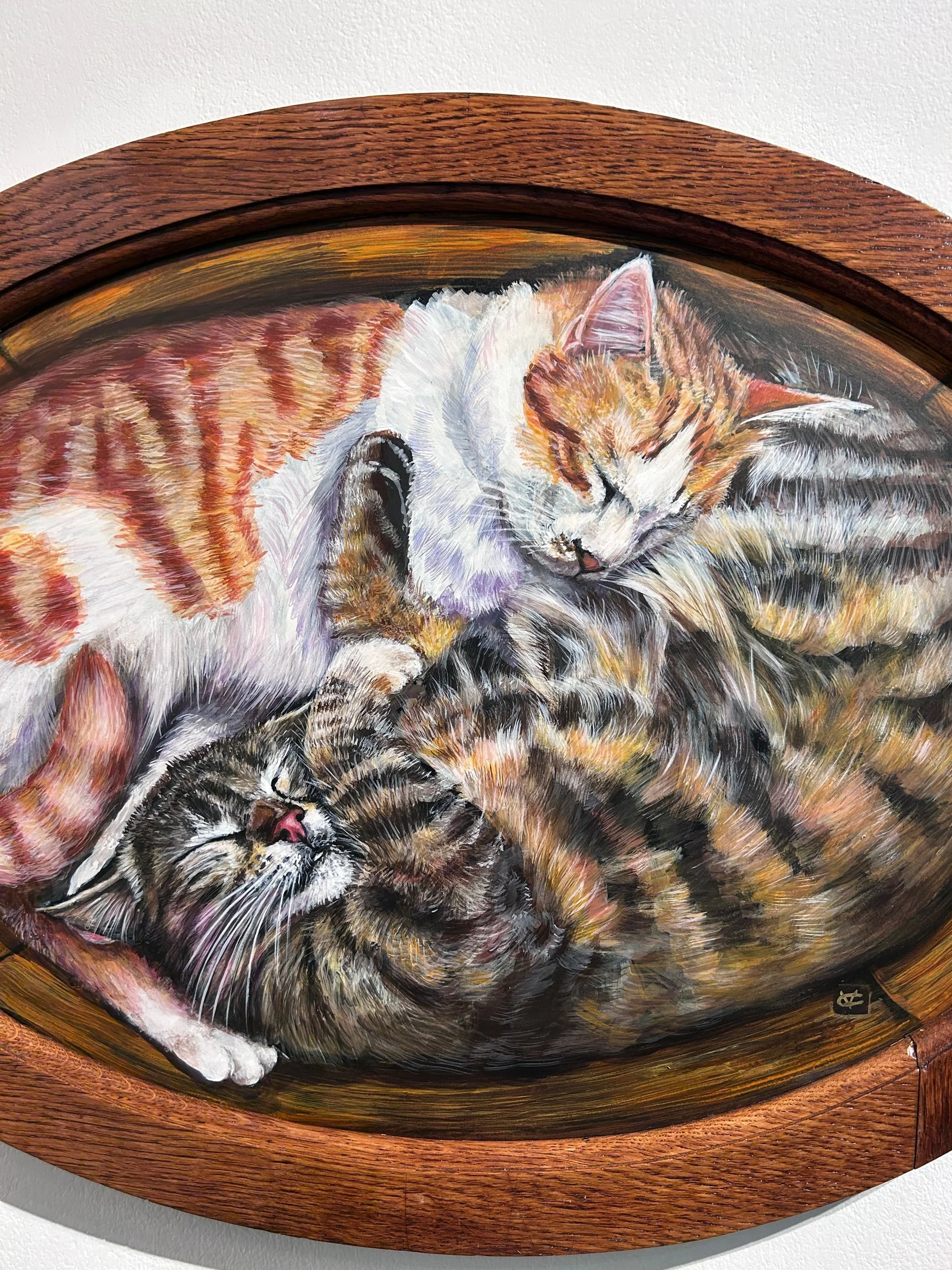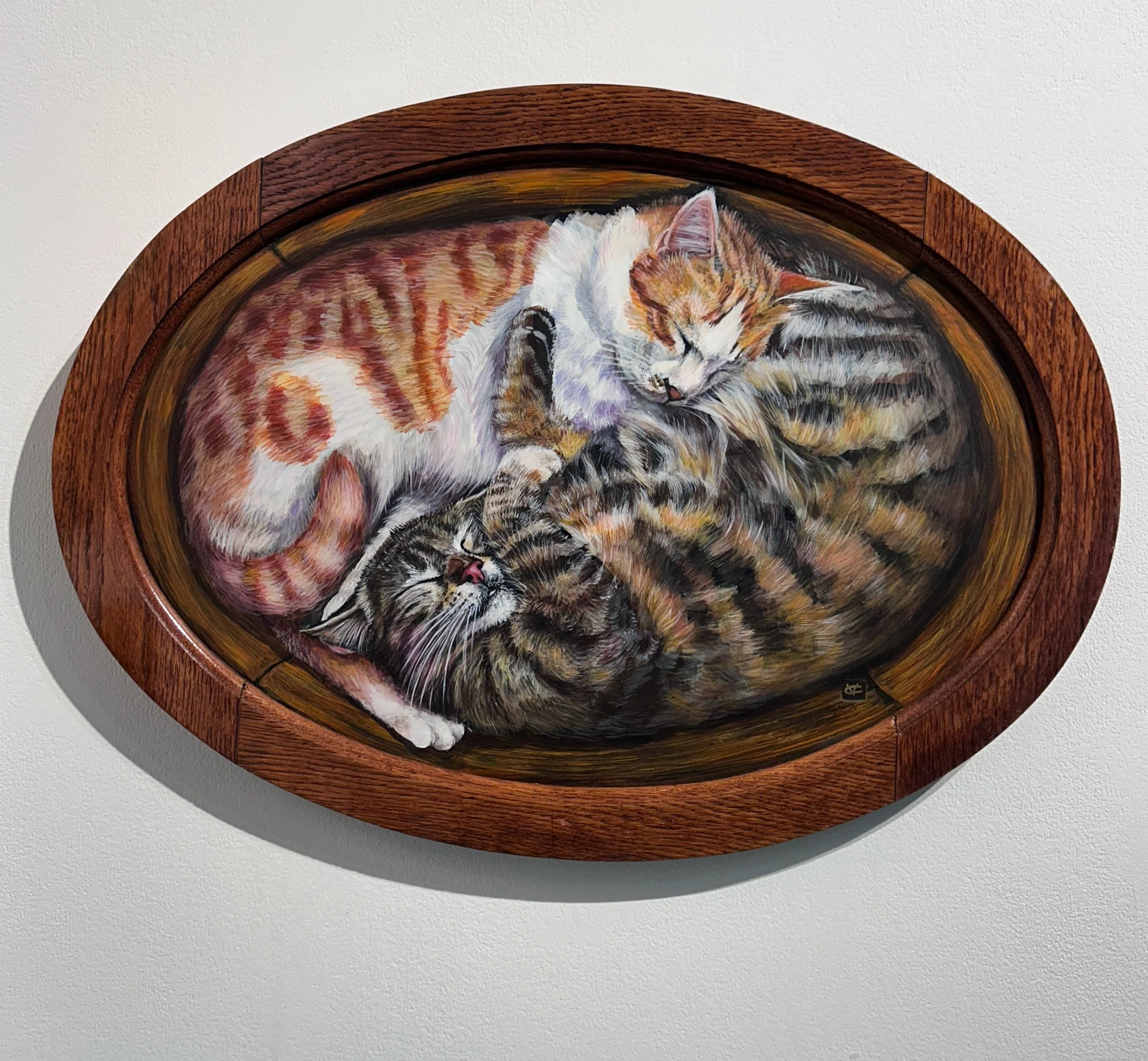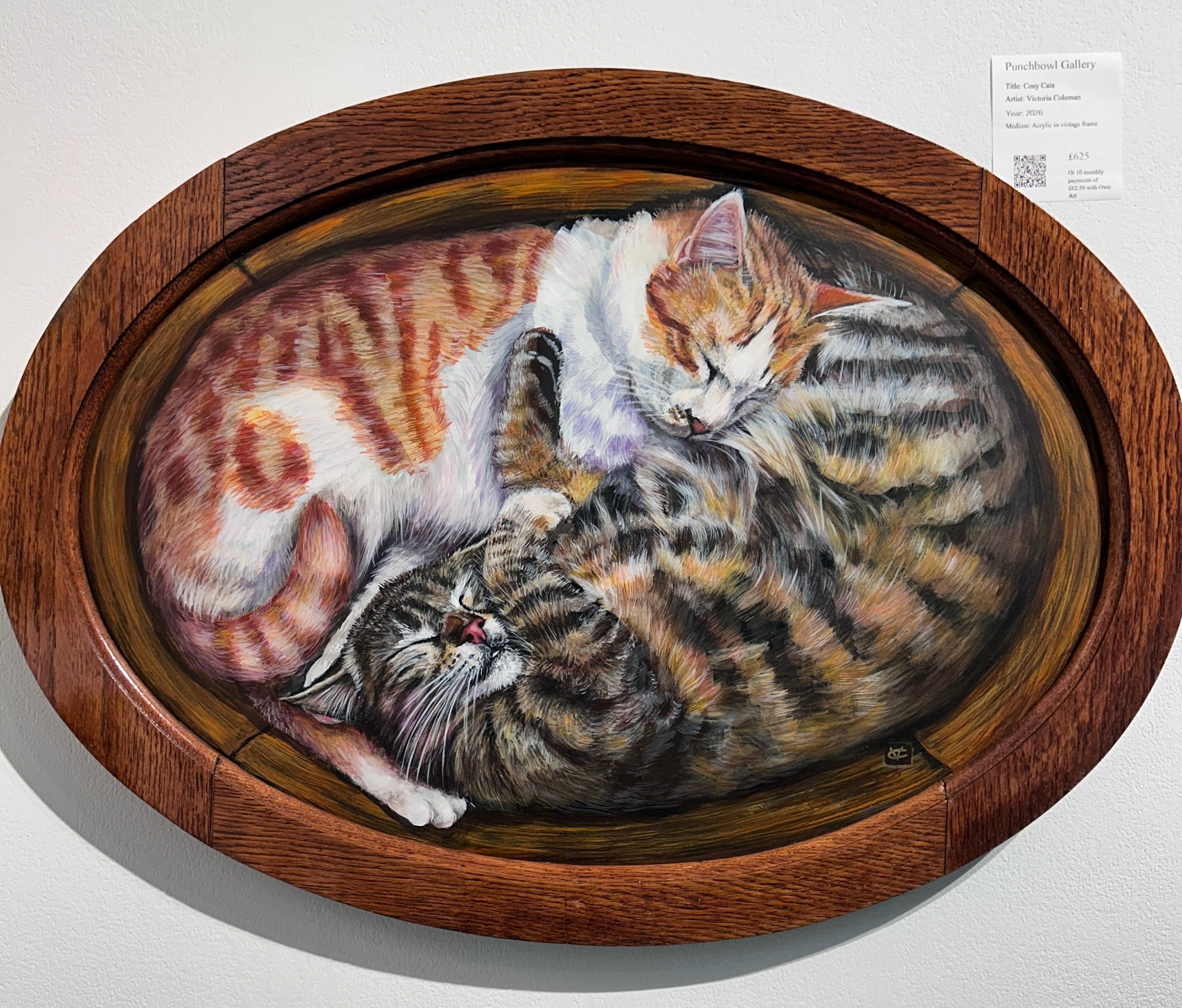 Victoria Coleman › Cosy Cats Image 1 of 3 Image 2 of 3 Image 3 of 3 Cosy Cats £625.00 Acrylic on board in an oval vintage wood frame60x40cm (approximate size) Purchase Added! Acrylic on board in an oval vintage wood frame60x40cm (approximate size) You Might Also Like Quick View Freedom 20x20cm in 25x25cm black frame £200.00 Quick View The Messenger 20x20cm n 25x25cm black frame £200.00 Quick View Betwixt And Between 30cm diameter £250.00 Sold Quick View Drinkies With Dixie 45x60cm (in frame 48x64cm) £750.00 Sold Quick View Cat In A Box #14 £325.00